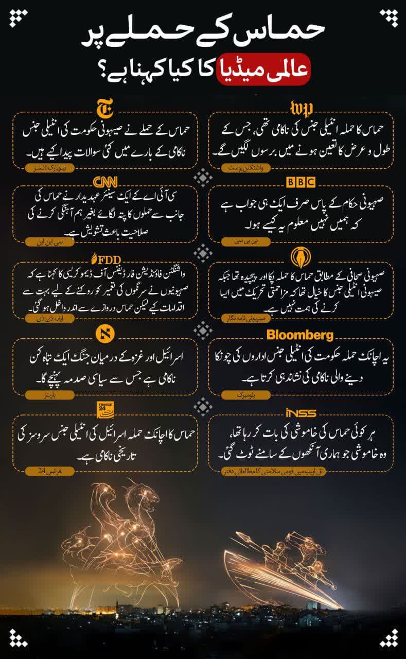 انفوگرافی | صہیونی ریاست پے حماس کے تاریخی حملے کے بارے میں عالمی ذرائع ابلاغ کا رد عمل