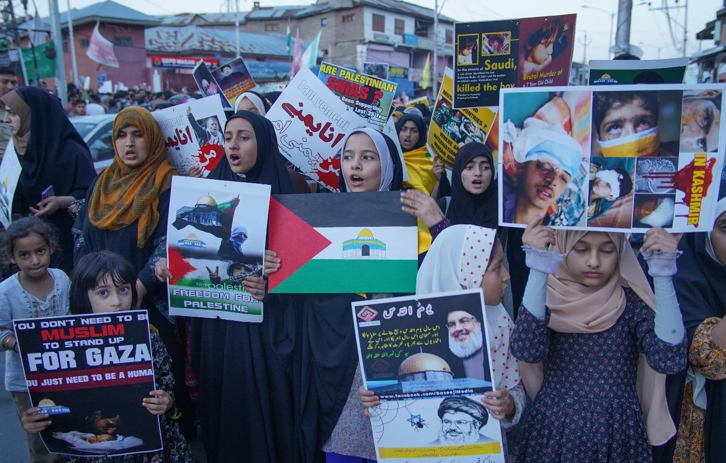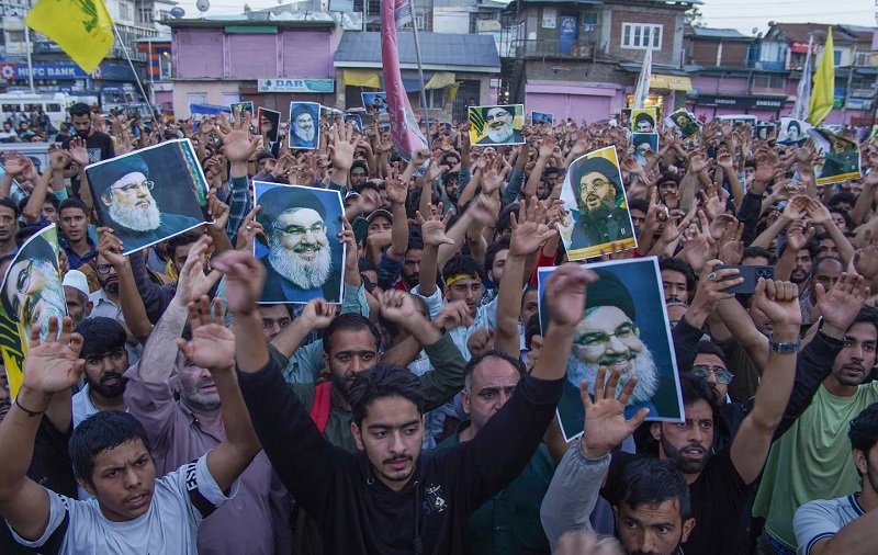 بھارت کے زیر انتظام کشمیر کے شہر ماگام کے لوگوں نے سیدالمقاومہ سید حسن نصر اللہ کی شہادت پر سید کی تصاویر اور پلے کارڈز اٹھا کر ان پر صہیونیوں کے دہشت گردانہ کاروائی پر احتجاجی مظاہرہ کیا۔/110