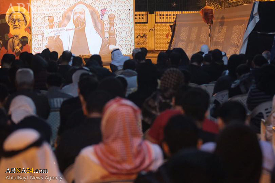 ابنا؛ بحرین میں شیخ عیسی قاسم کی رہائشگاہ کے باہر احتجاج میں بیٹھے افراد نے جناب ام البنین کے یوم وفات پر عزاداری کی۔