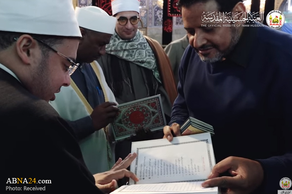 اہل بیت(ع) نیوز ایجنسی۔ابنا۔ مصر کے ادارہ اوقاف کے نمائندوں اور الازہر یونیورسٹی کے علماء پر مشتمل ایک وفد جو داعش پر کامیابی کی مبارک باد اور عراق کی سیاسی و مذہبی صورتحال سے آگاہی کے لیے عراق کے دورے پر ہے نے حرم امام حسین علیہ السلام کی زیارت کی۔